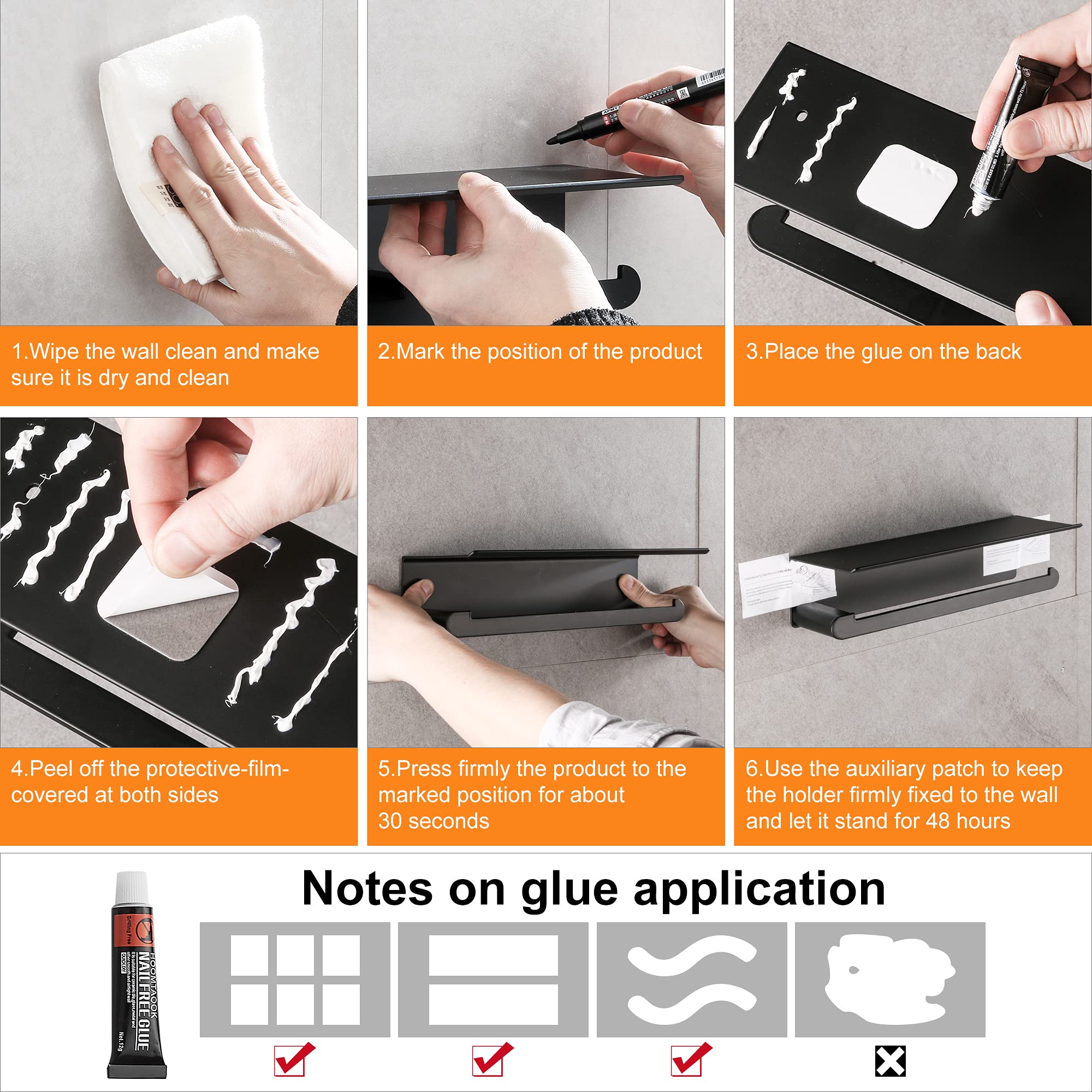 Amazon Com Dufu Paper Towel Holder Wall Mount For Kitchen Self Adhesive Paper Towel Holder With Shelf For Bathroom Anti Rust Aluminum No Drill Or Wall Mounted With Screws Matt Black